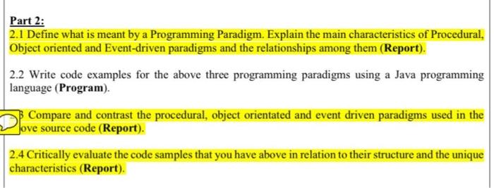 Solved Part 2 2 1 Define What Is Meant By A Programming Chegg Com